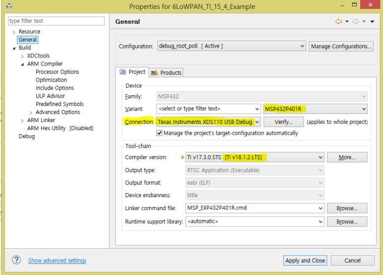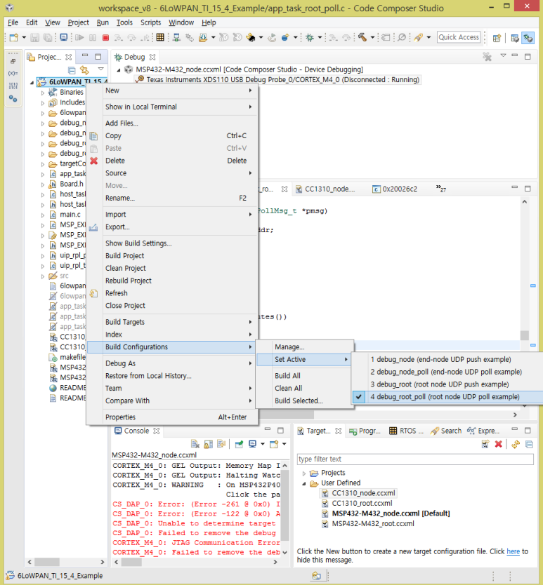 1. TIDA-01547에서 제공하는 6LoWPAN_TI_15_4_Example을 다운받아서 CCS에서 import project를 통해 project를 연다.