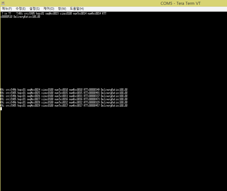 그래서 end node를 하나 더 추가해서 실험해봤지만 여전히 hop수는 1개?였다. (위에 사진을 보면 RX 메세지에 hop:01만 있음을 볼 수 있다.)